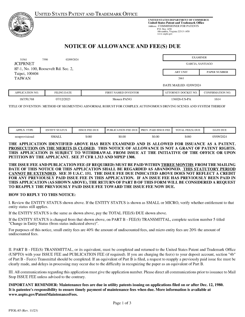 恭賀山東聚祥榮獲美國專利授權(quán)<一種面向復(fù)雜自動駕駛場景的異常魯棒分割方法與系統(tǒng)>
