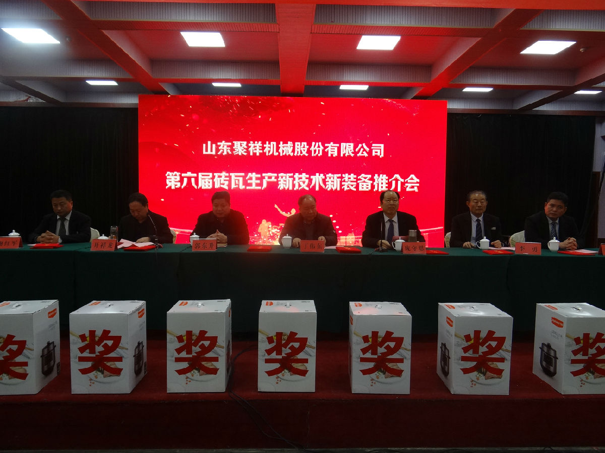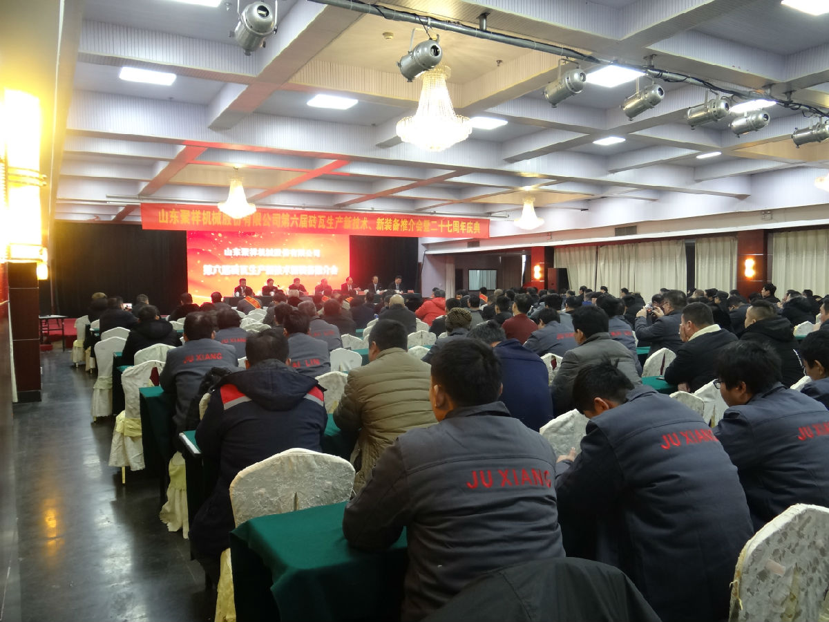 2019年1月8日,山東聚祥機(jī)械股份有限公司二十七周年慶典暨第六屆磚瓦生產(chǎn)新技術(shù)新裝備推介會(huì)在著名的中國麒麟之鄉(xiāng)—巨野縣隆重召開。巨野縣麗天明澤大酒店張燈結(jié)彩,喜迎八方來賓。共計(jì)400余人參加了此次活動(dòng),包括來自全國各地的160多名客戶代表,行業(yè)專家及公司全體員工,大家齊聚一堂、共話友誼、共謀發(fā)展。