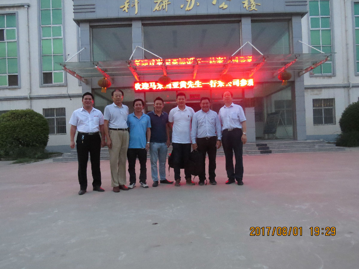 8月1日,馬來西亞雪蘭莪墻材公司黃先生一行4人,到山東聚祥機械股份有限公司參觀考察。黃先生一行在公司董事長龐守恩的陪同下,首先參觀了公司新研發(fā)的高科技產(chǎn)品,隨后又到山東恒聚新型建材股份有限公司、山東久隆新型建材有限公司、山東順達新型建材有限公司參觀。每到一處,黃先生都仔細查看、詳細詢問、一一拍照,在交談中對山東聚祥機械股份有限公司生產(chǎn)的自動化、智能化裝備贊嘆不已。